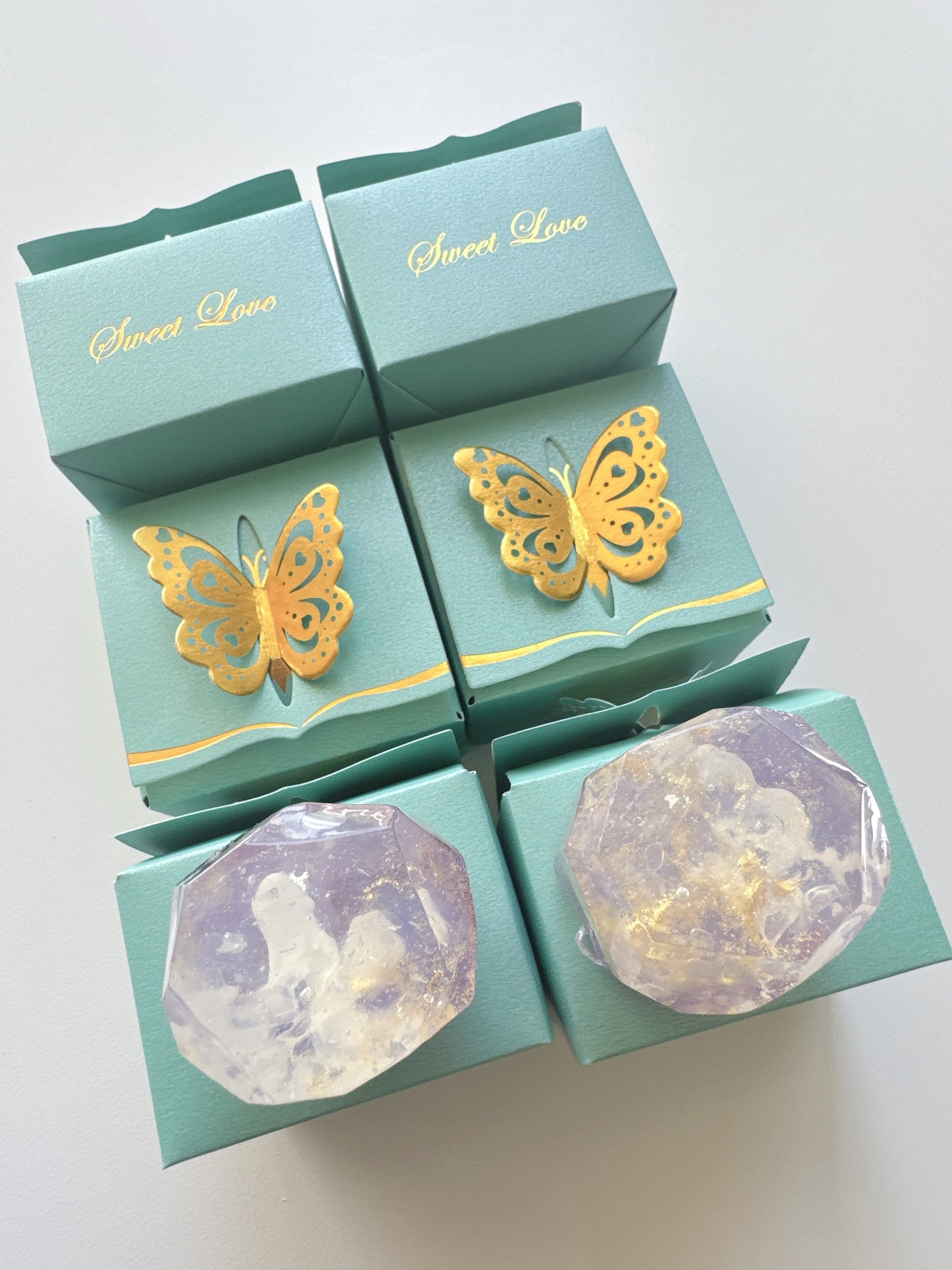 A sculpted diamond soap with a delicate sparkle and whispers of cloud-like trails. Infused with your choice of a timeless color, this design symbolizes the hope of a new beginning and the promise of a love that lasts forever. This elegant luxury wedding gift is a pure, glowing work of art and a beautiful symbol of eternal commitment.